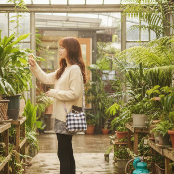 【島上築夢|斜背包 】·內容物:前後有內袋 ・使用金門特色傳統意象花帔格子布 ・外層:主要使用聚酯纖維 ・内里:100% 棉